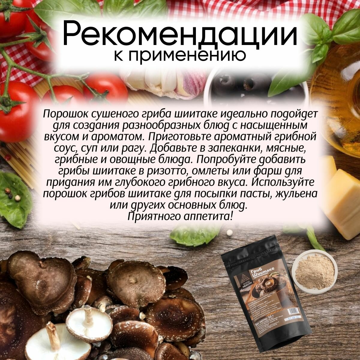 Натуральный грибной препарат сушеные молотые грибы Шиитаке для снижения уровня холестерина, давления, улучшения работы ЖКТ 50 г интересное: