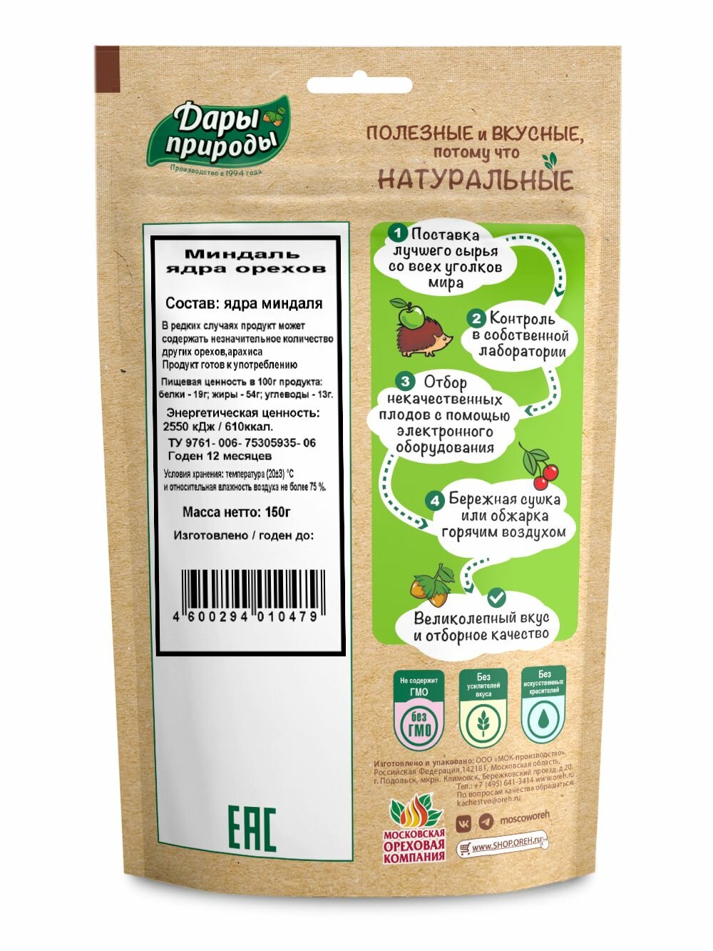 Миндаль дары природы сушеный без обжарки, 150 г интересное: