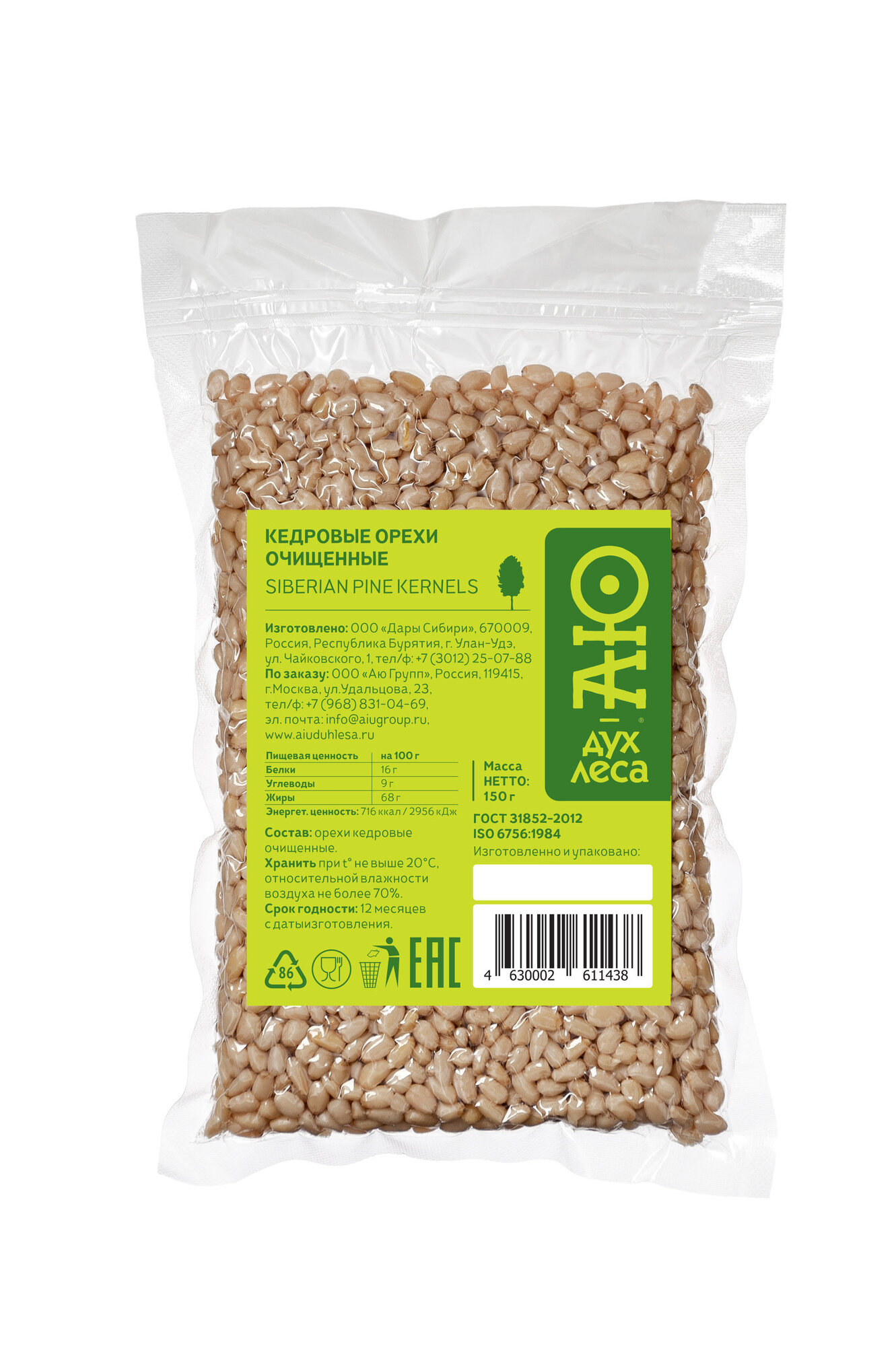 Кедровые орехи очищенные ТМ АЮ-дух леса, 150 г, новый урожай