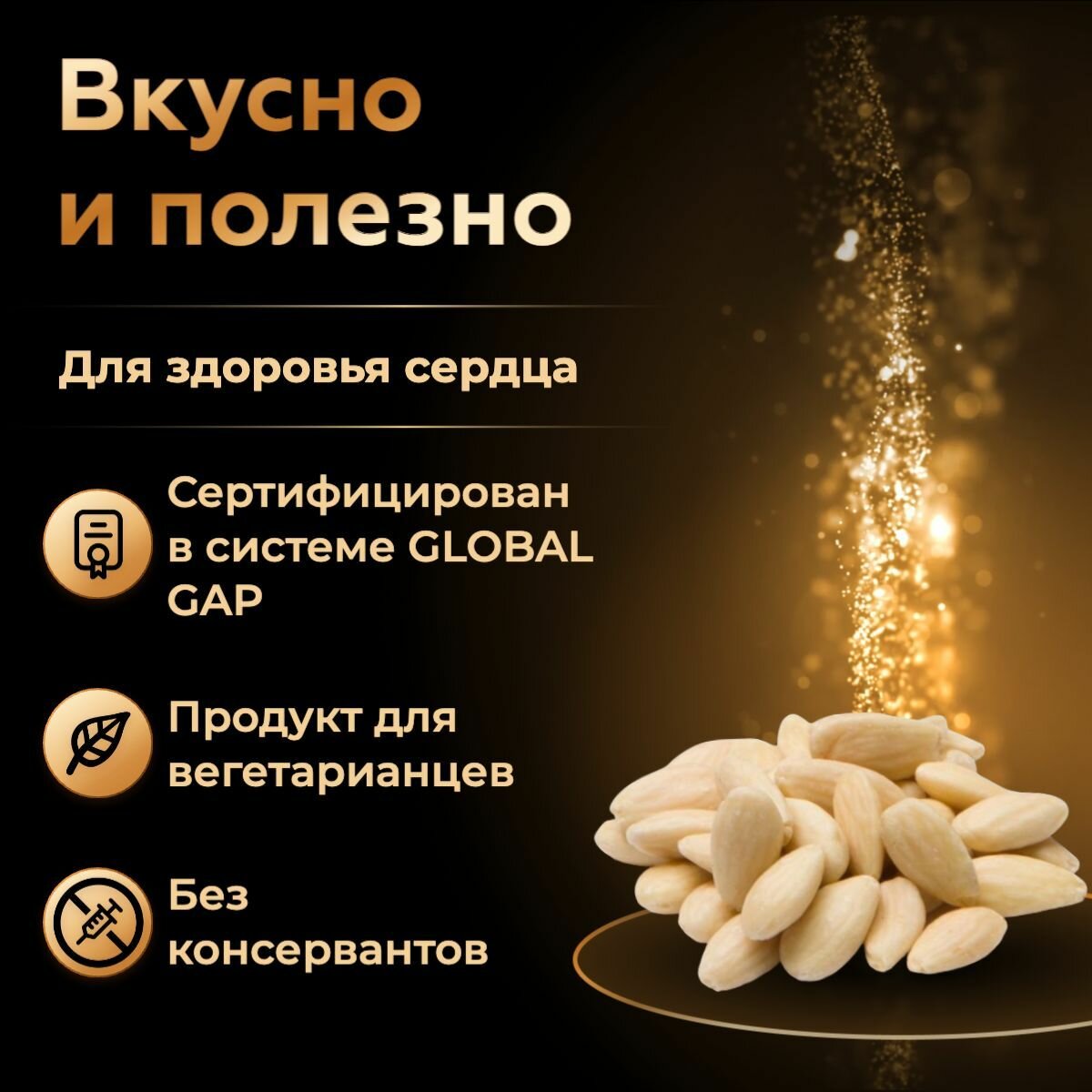 | Состав | Ядро бланшированного миндаля цельное 100% |