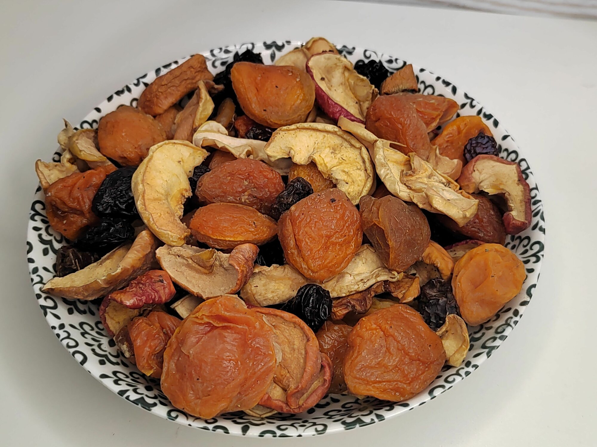 | Состав | Урюк сушёный, яблоко сушёное, груши сушёные, вишня сушёная, изюм |