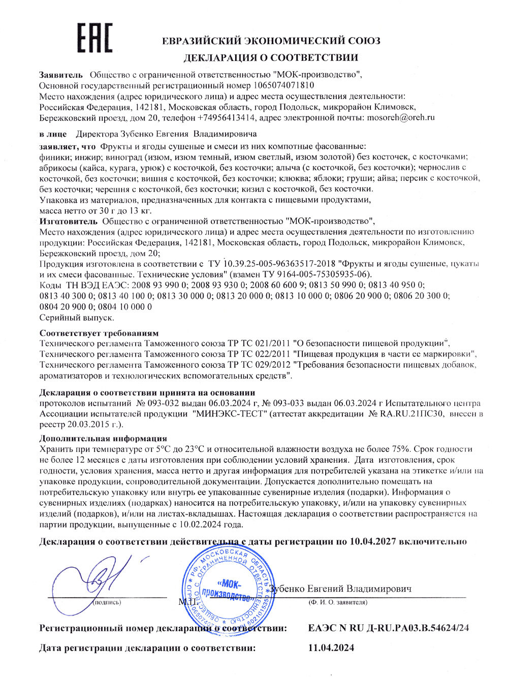 | Стандарты производства | ТУ 10.39.25-005-96363517-2018 |