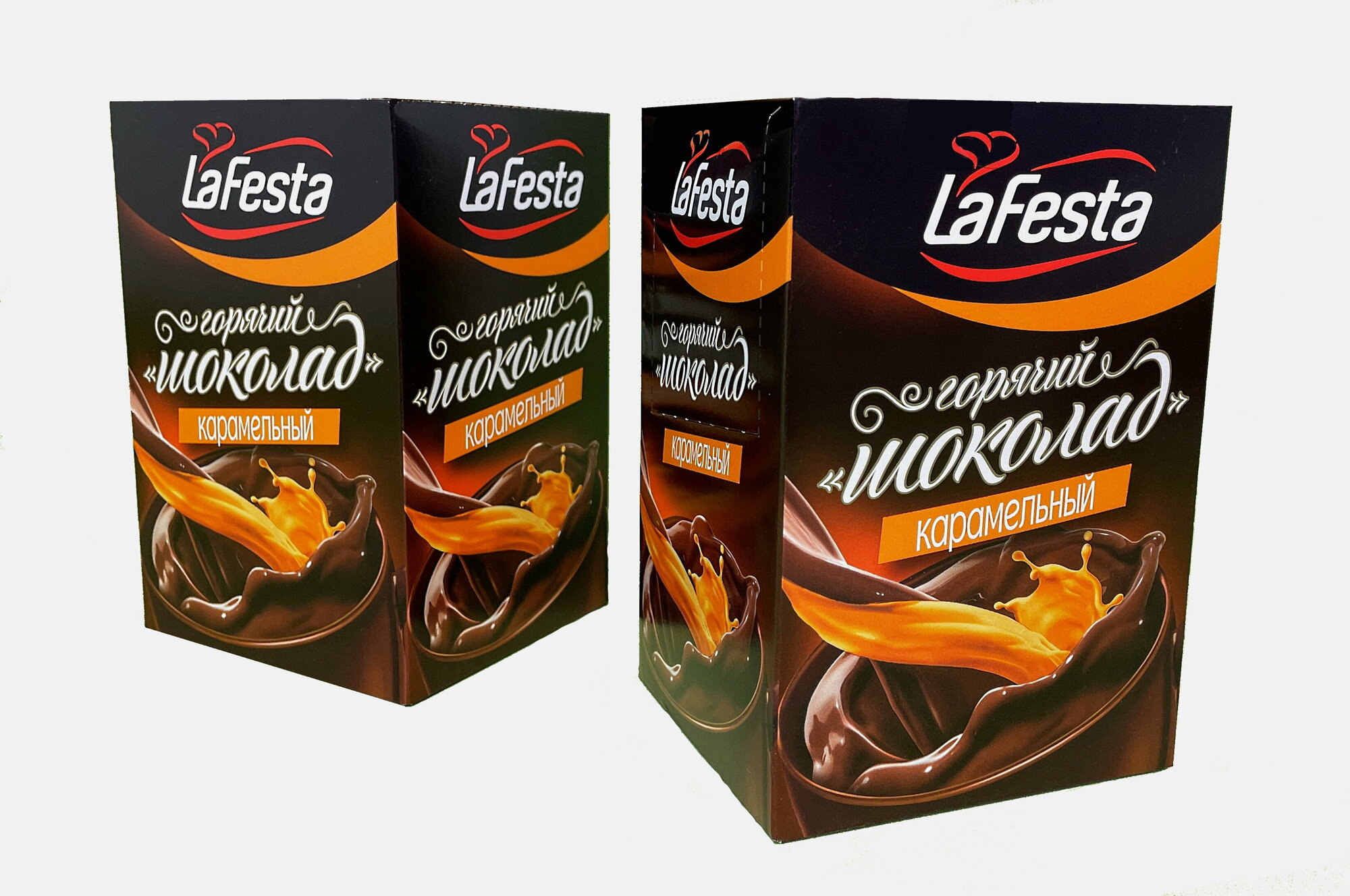 Горячий шоколад "La Festa" шоколадный со вкусом карамели, 10 пакетиков по 12,5 гр