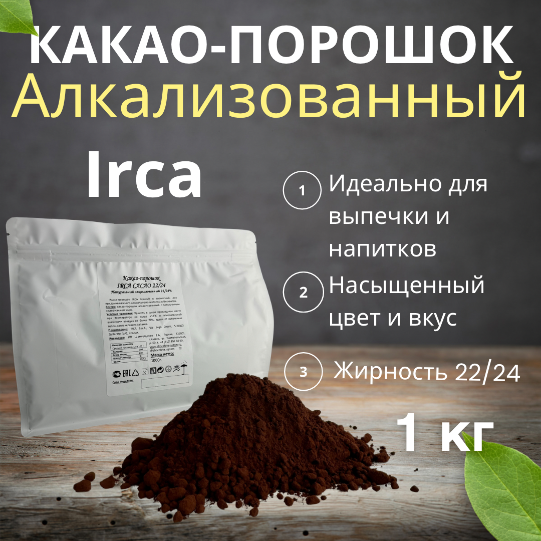 Купить Какао порошок IRCA темно-красный 1кг, жирность 22/24%, натуральный, алкализованный.
