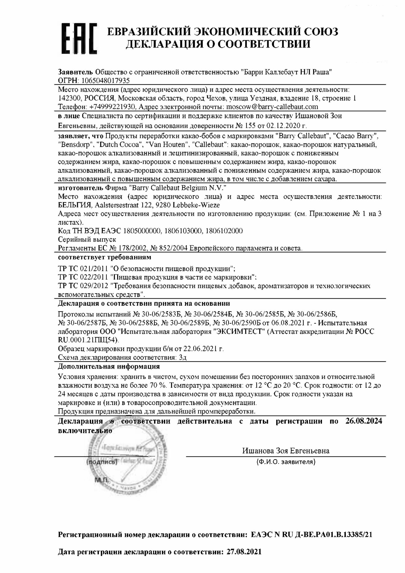 | Дополнительная информация | Продукт хранить в чистом, сухом помещении без посторонних запахов и относительной влажности воздуха не боле 70% Температура хранения 12 - 20 °C |
