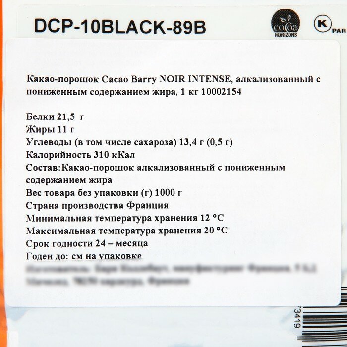 Какао-порошок Cacao Barry NOIR INTENSE, 10-12%, 1 кг