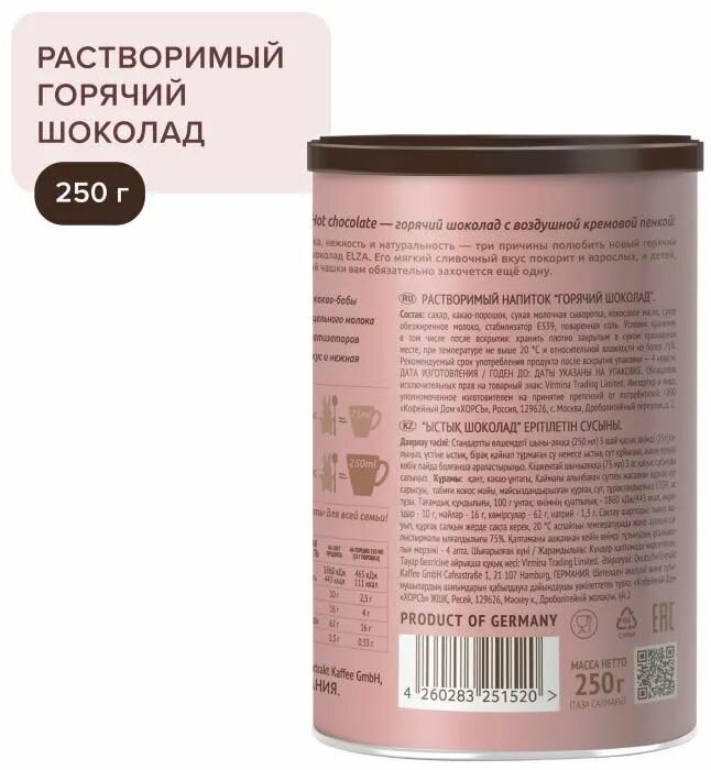 Горячий шоколад с воздушной кремовой пенкой Elza Choco Band (Германия) 250 гр. х 2 шт.
