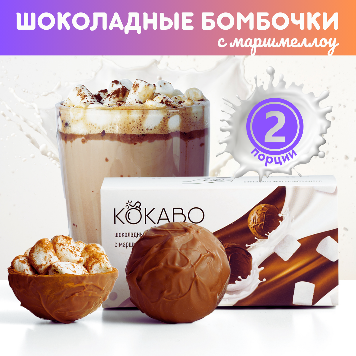 Купить Шоколадные бомбочки с какао и маршмеллоу 2 шарика. Вкусный подарок для детей