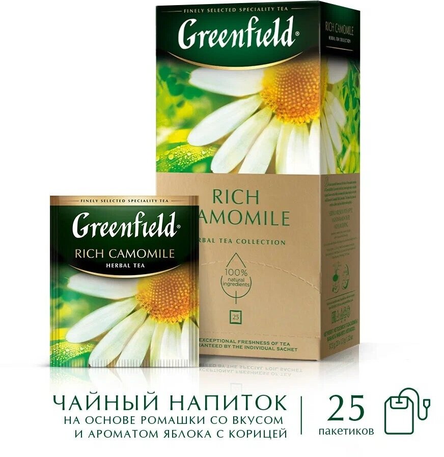 Greenfield чайный напиток на основе ромашки со вкусом и ароматом яблока с корицей Rich Camomile 2г*25п интересное: