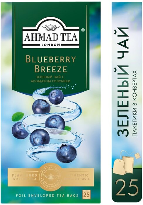 Купить Чай "Ahmad Tea", Чай Блуберри Бриз с ароматом голубики, зеленый, пак. в к/фольги, 25х1,8г