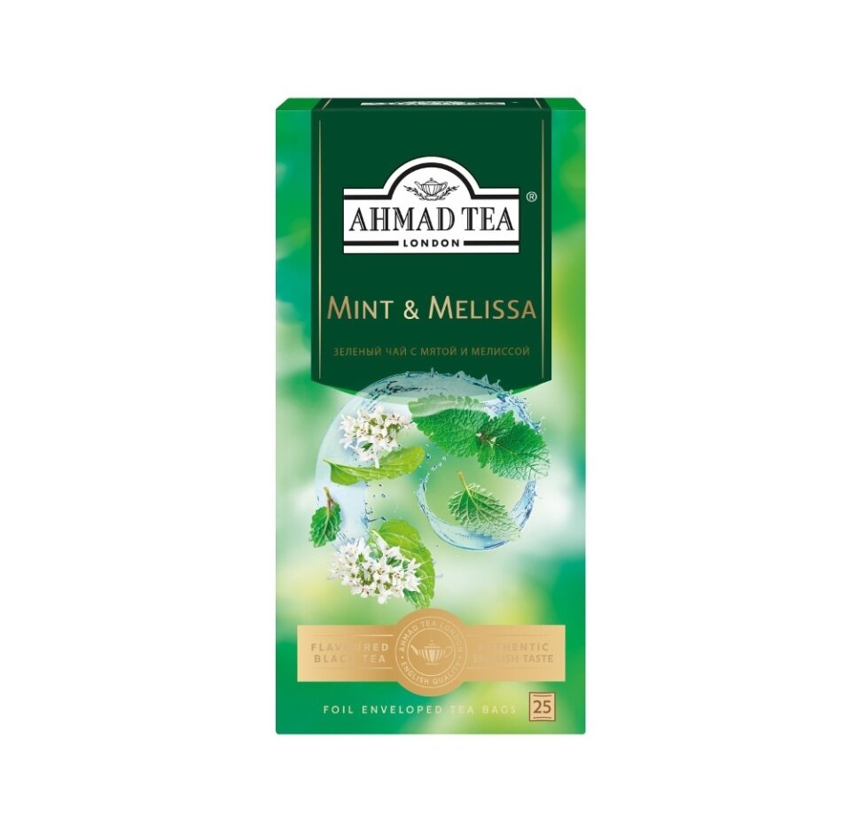 Чай зеленый Ahmad Tea Mint & Melissa в пакетиках, 25 пак.