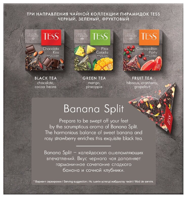 TESS чай черный в пирамидках BANANA SPLIT 1,8г*20п интересное: