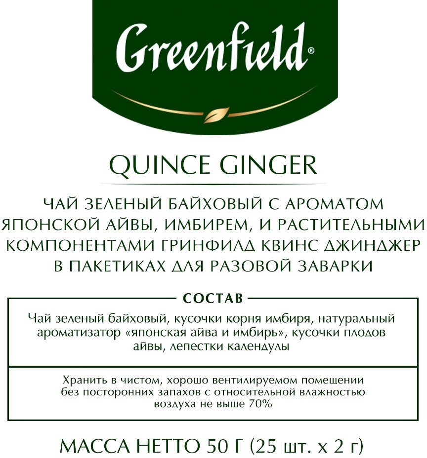 Greenfield чай зеленый пакетированный Quince Ginger 2г*25п интересное: