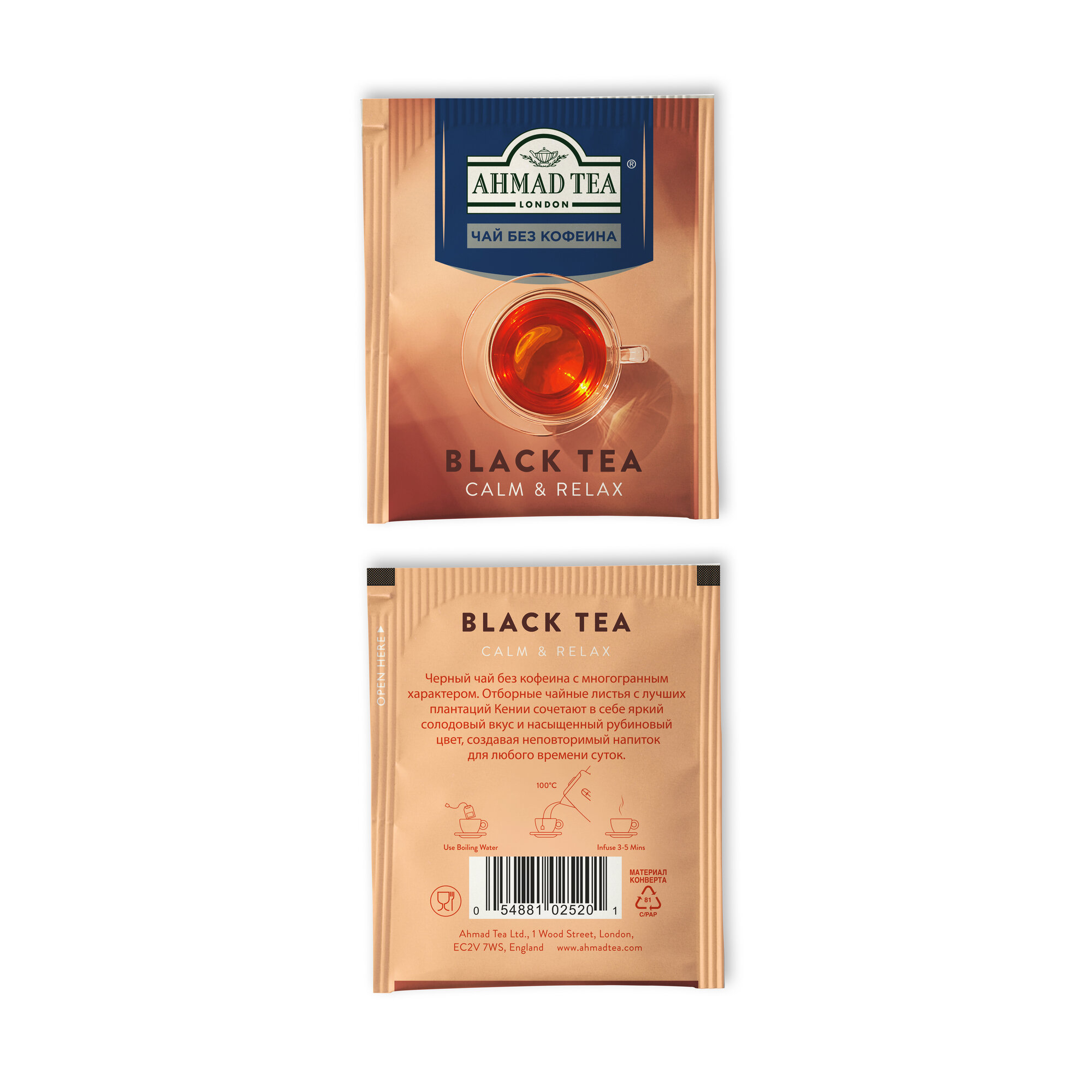2619 Чай "Ahmad Tea", Чёрный чай без кофеина, пакетики с ярлычками в конвертах, 20х2г интересное: