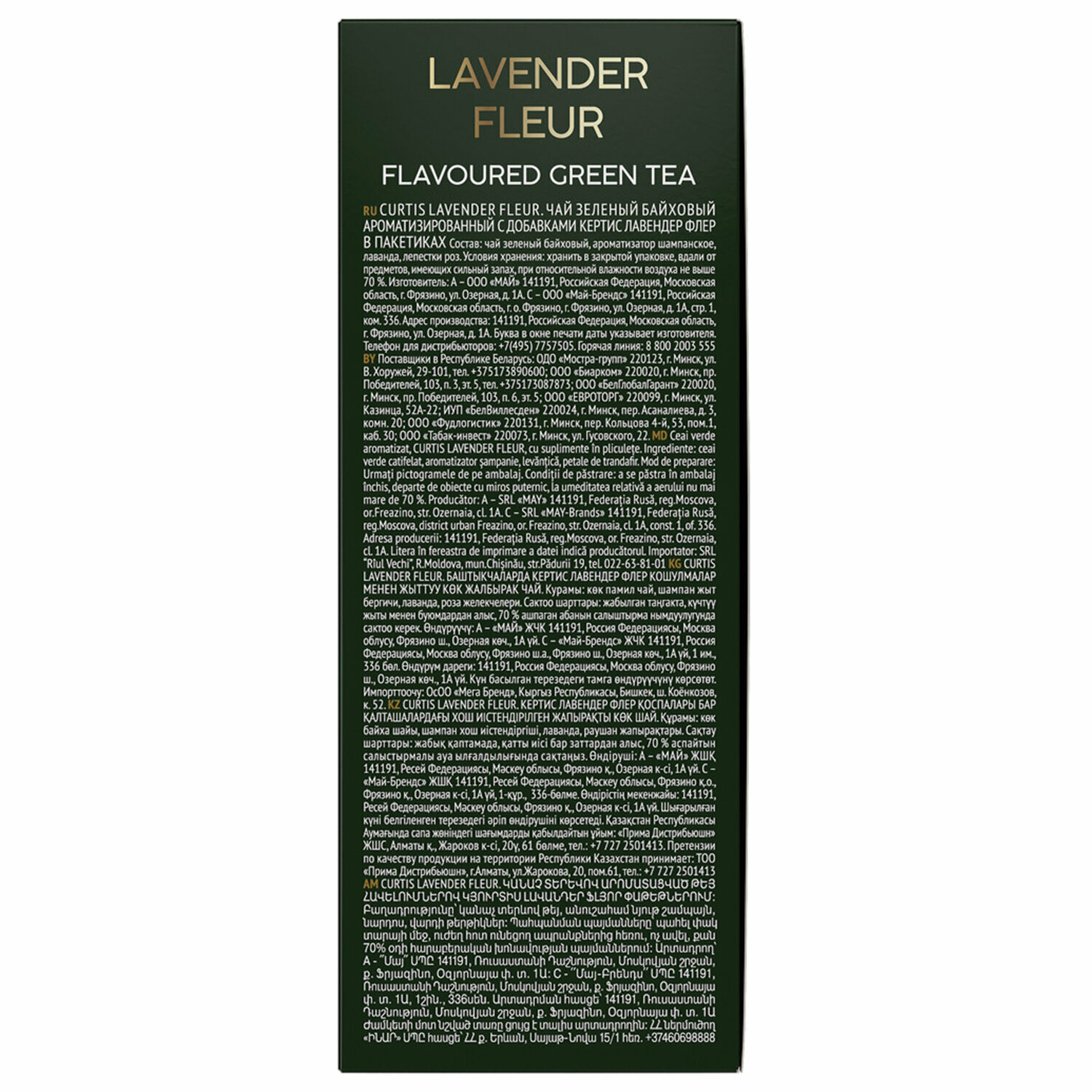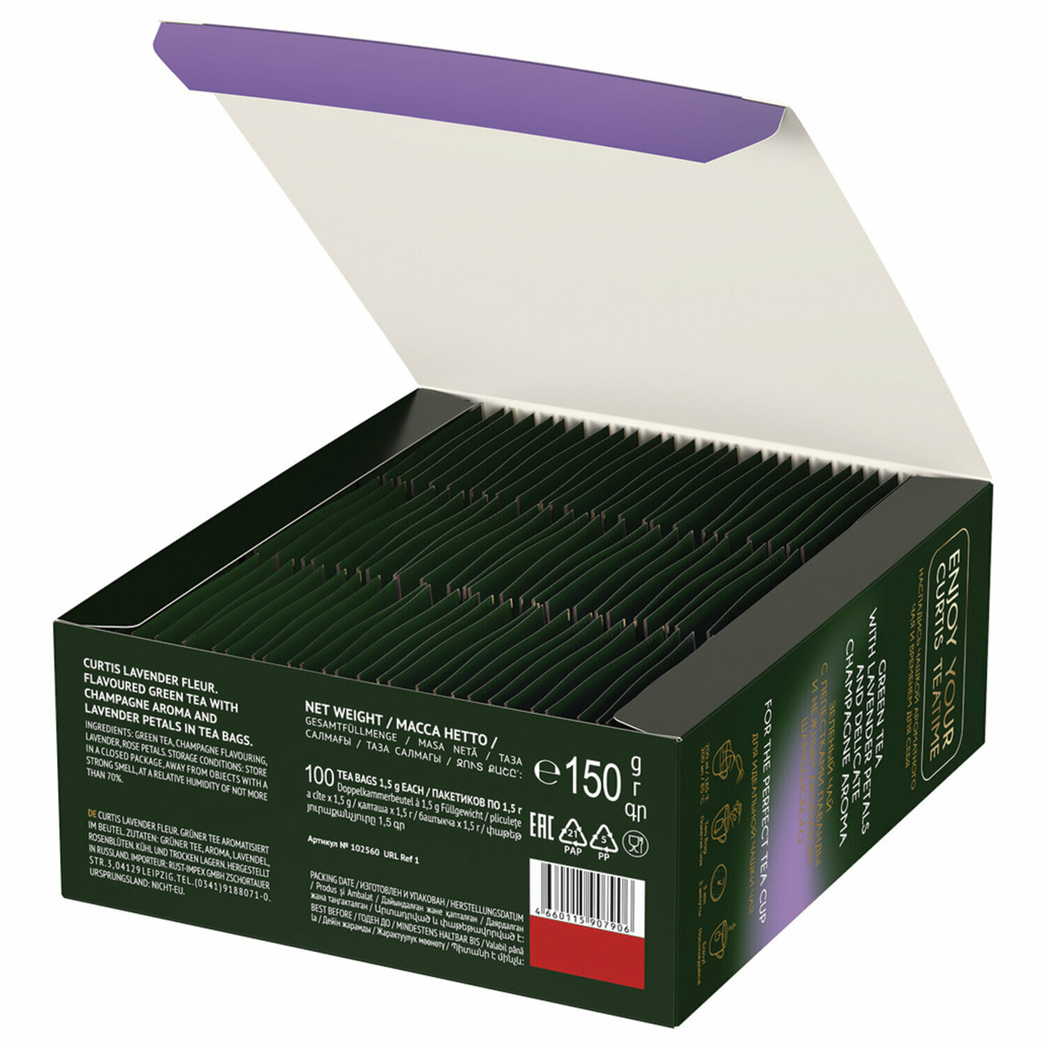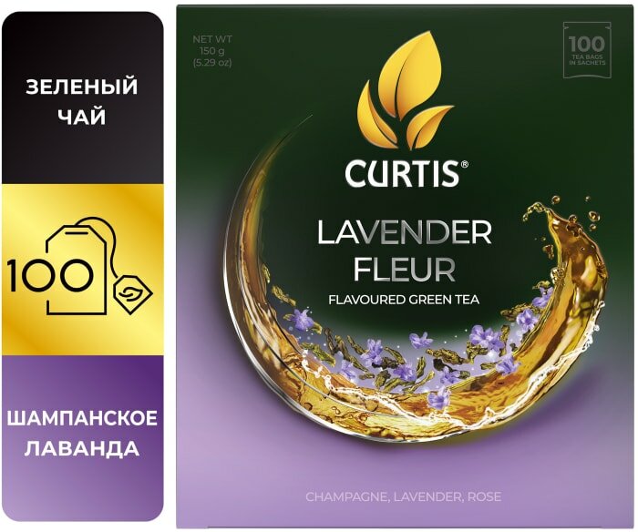 Чай зеленый в пакетиках CURTIS "Lavender Fleur" 100 пакетиков, c лавандой, лепестками роз и ароматом шампанского, мелколистовой интересное: