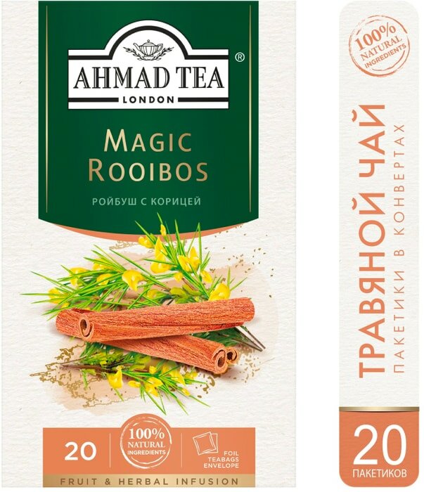 Чай "Ahmad Tea", Мэджик Ройбуш, травяной ройбуш с корицей, пак. в к/фольги 20х1,5г интересное:
