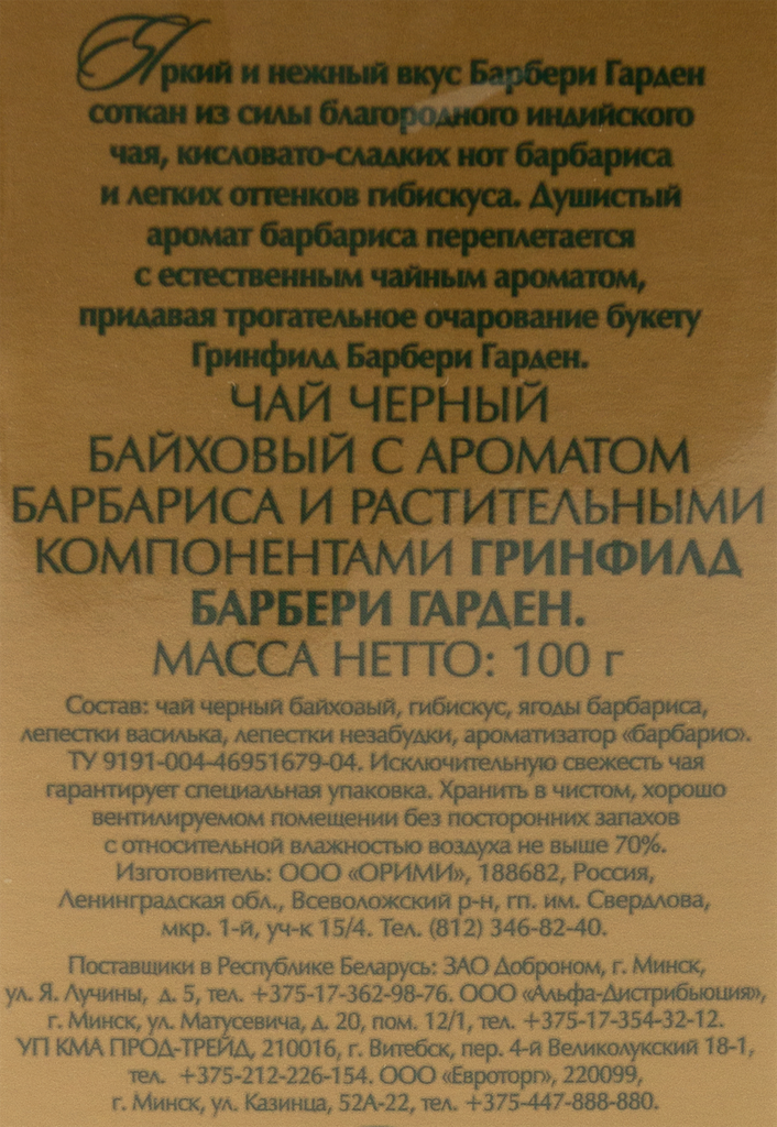 Чай черный листовой Greenfield Barberry Garden, 100 г интересное: