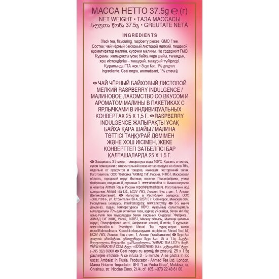 2261 Чай "Ahmad Tea", Чай Малиновое лакомство, черный, пакетики с ярлычками в конвертах, 25х1,5г интересное: