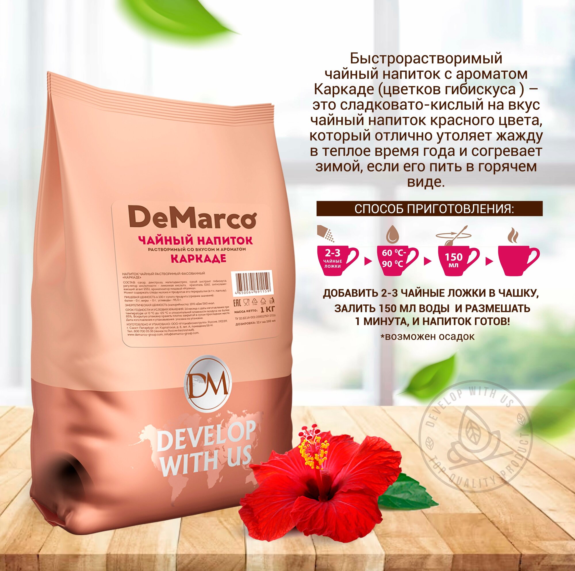 Чайный напиток растворимый со вкусом и ароматом Каркаде, DeMarco, 1 кг интересное: