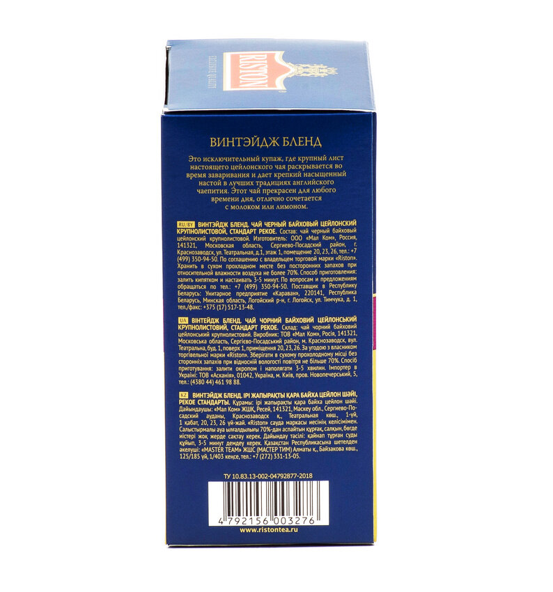 Чай Riston Vintage Blend листовой черный, 8 пачек по 200 г интересное: