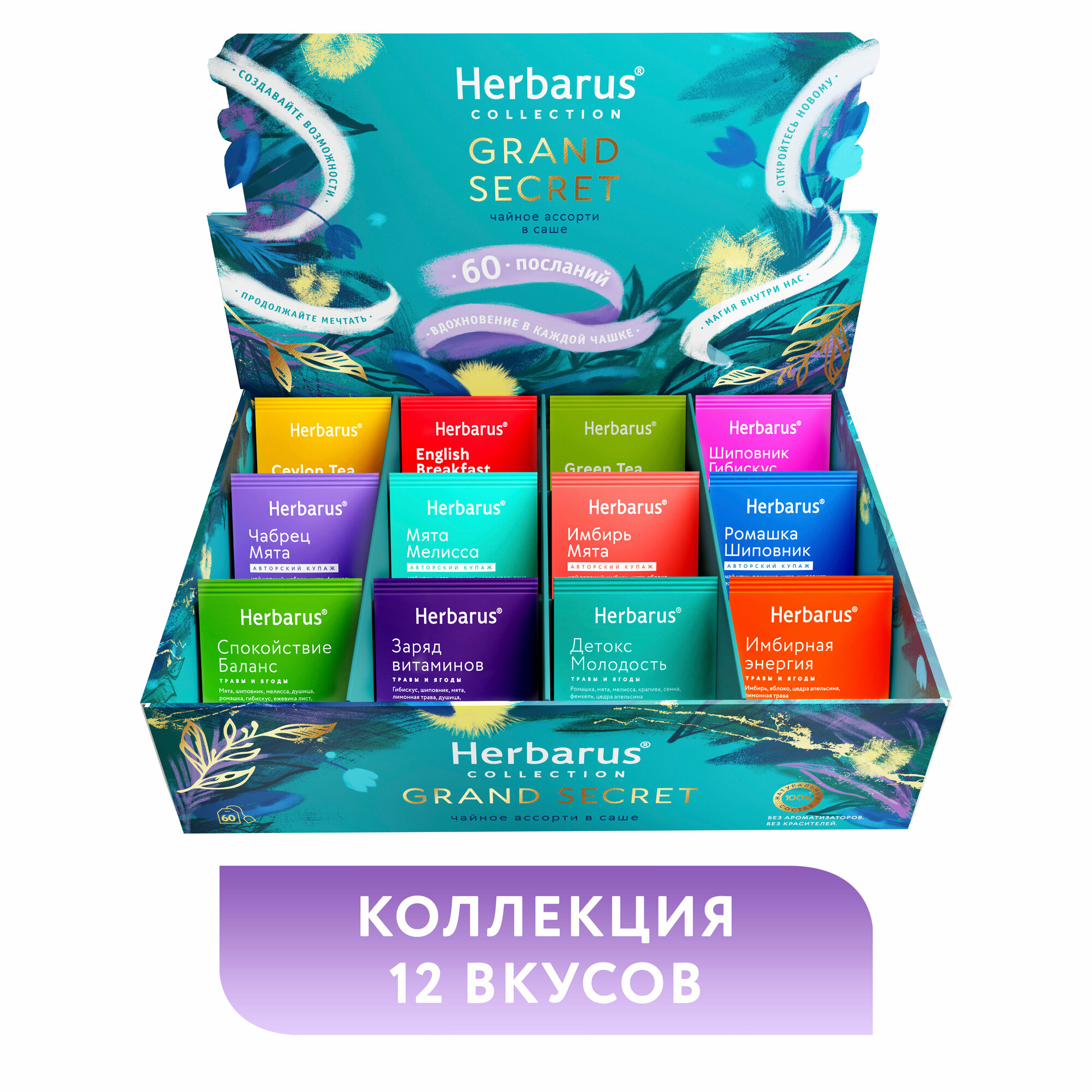 Купить Подарочный набор чая в пакетиках Herbarus Чайное Ассорти GRAND SECRET, 60 шт.