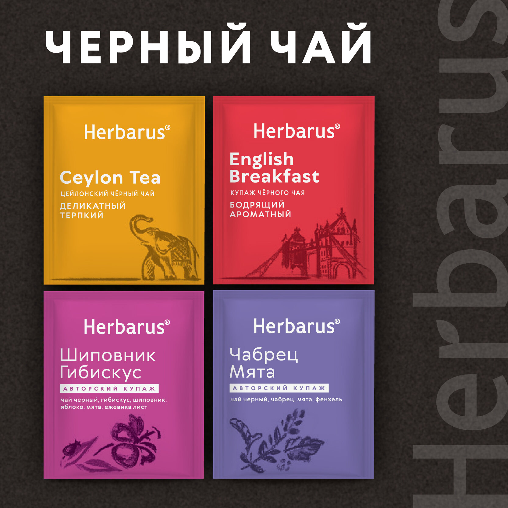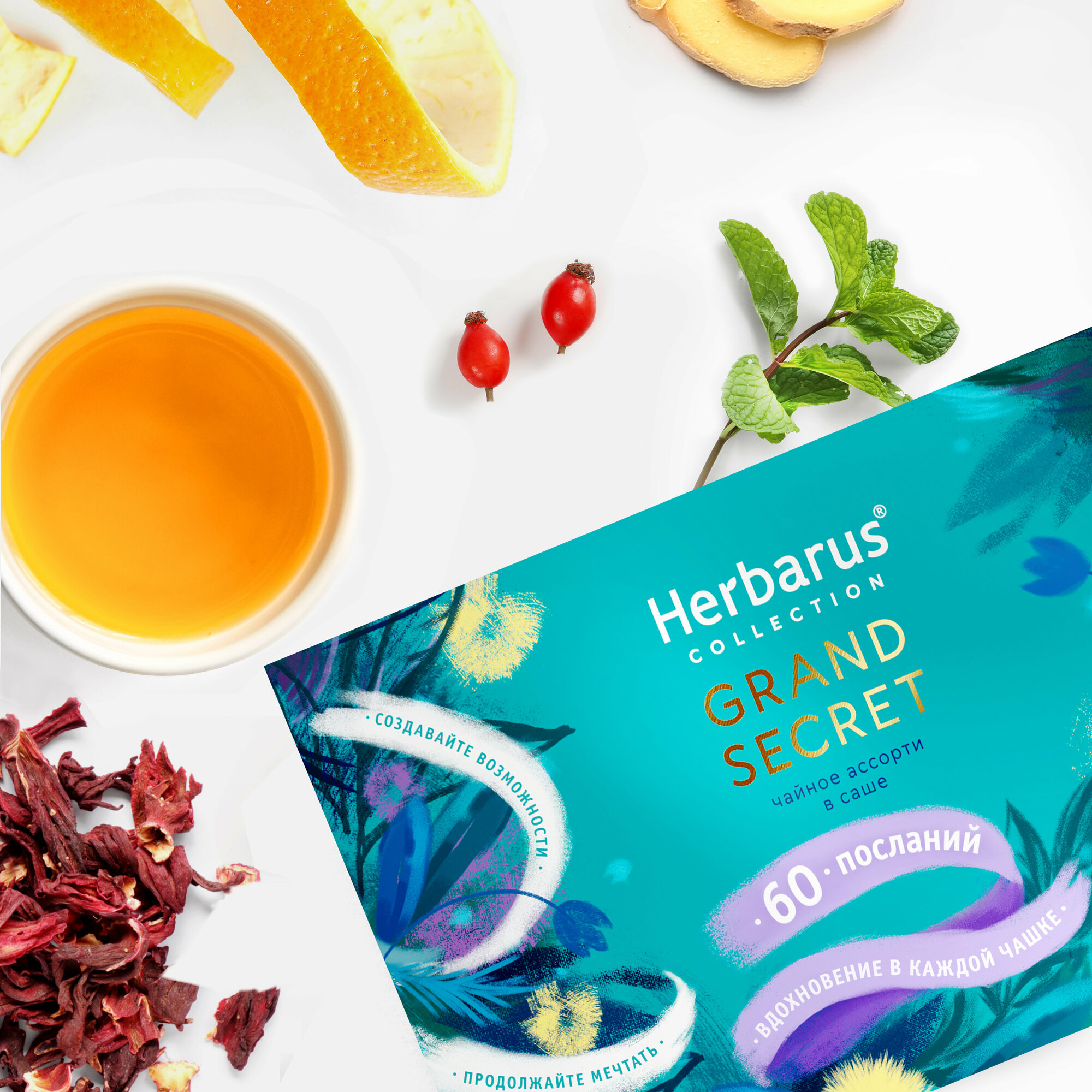 Подарочный набор чая в пакетиках Herbarus Чайное Ассорти GRAND SECRET, 60 шт. интересное:
