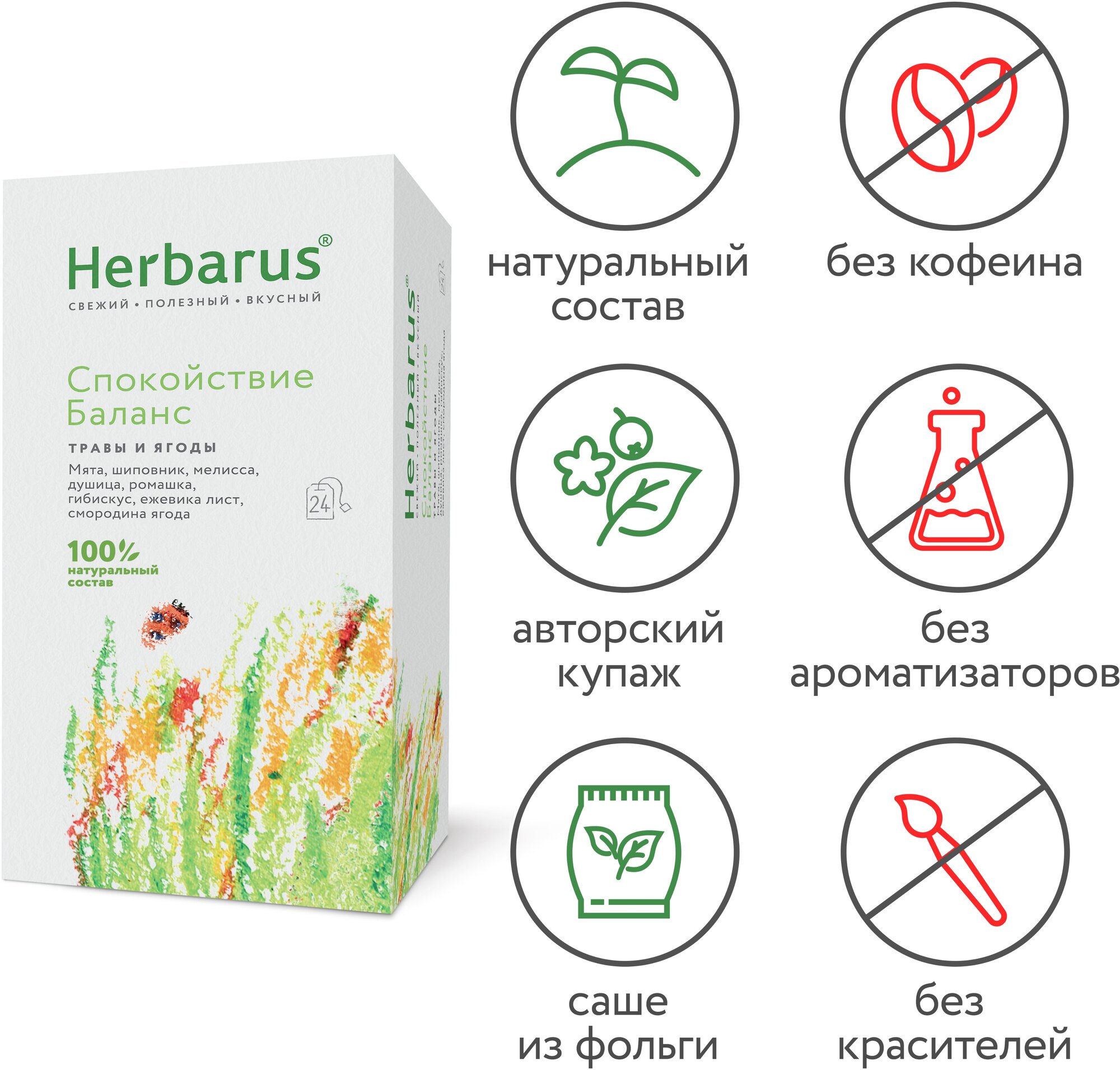 Чай в пакетиках травяной Herbarus "Спокойствие Баланс", 24 пак. интересное:
