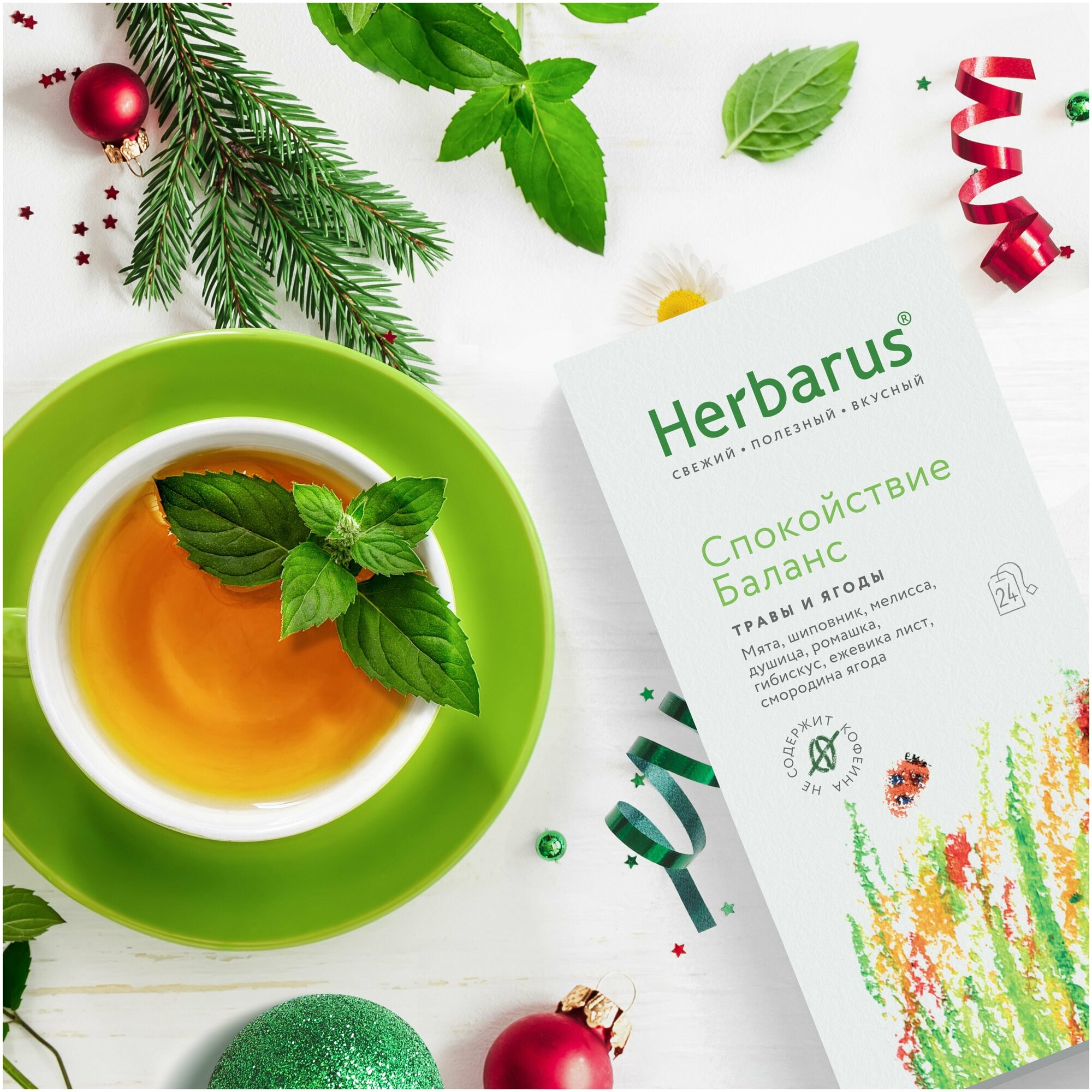 Чай в пакетиках травяной Herbarus "Спокойствие Баланс", мини-опт, 10 пачек по 24 пак. интересное: