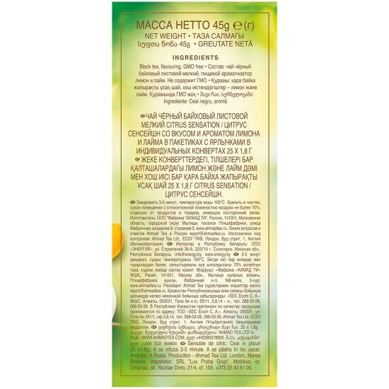 Чай "Ahmad Tea", Чай Цитрус Сенсейшн, с ароматом лимона и лайма, черный, пак. в к/ф, 25х1,8г интересное: