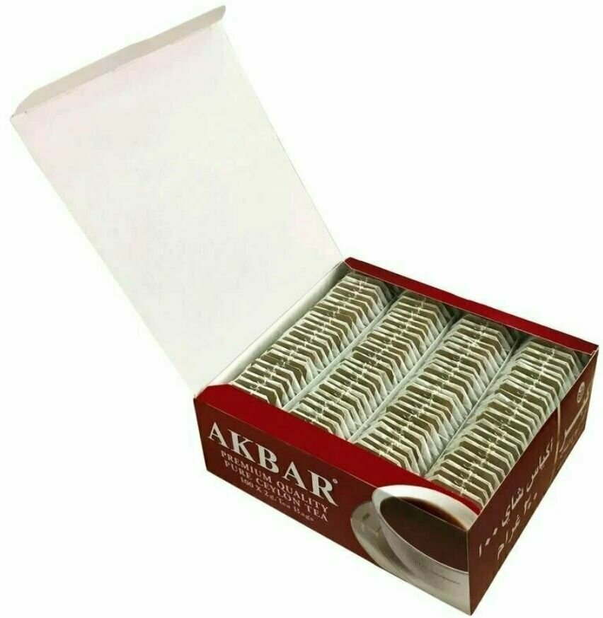 Чай в пакетиках акбар "красно-БЕЛАЯ серия" черный байховый цейлонский мелкий 100 шт.