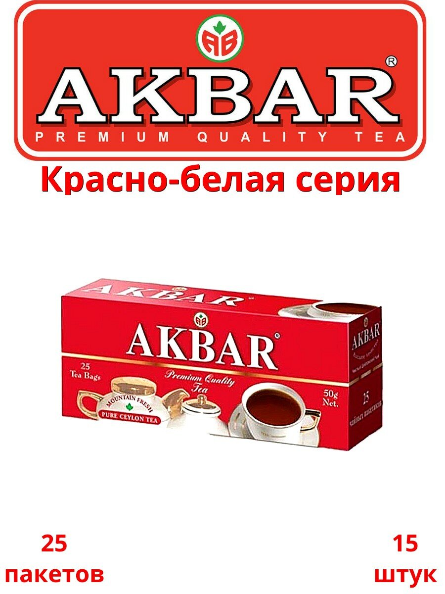 Чай в пакетиках акбар "красно-БЕЛАЯ серия" черный байховый цейлонский мелкий 100 шт.