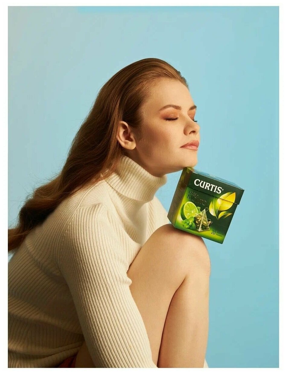 Чай в пирамидках, "Curtis Fresh Mojito", зелёный, ароматизированный, средний лист, (20 пакетиков по 1.7г) 4 упаковок