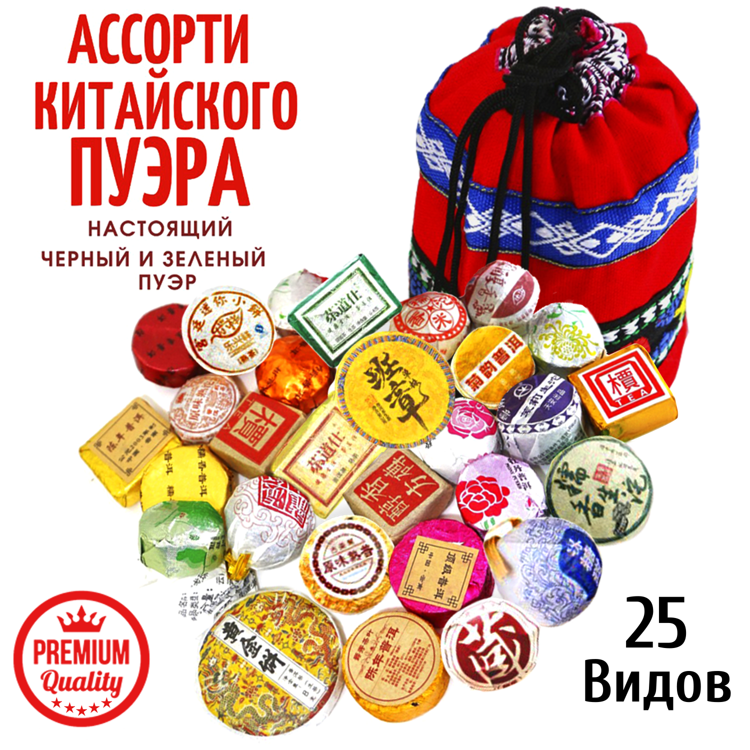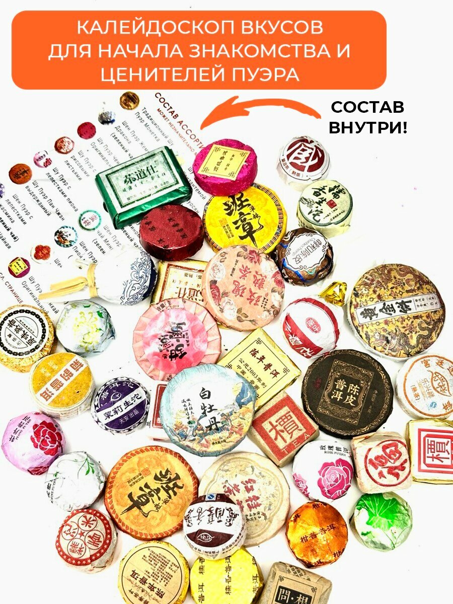Китайский Чай Пуэр прессованный мини тоуча, Ассорти шу и шен, зеленых и черных пуэров, 165 гр. / 25 шт. интересное: