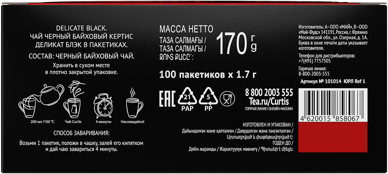 Чай черный Curtis Delicate Black, в пакетиках, 100 пак.