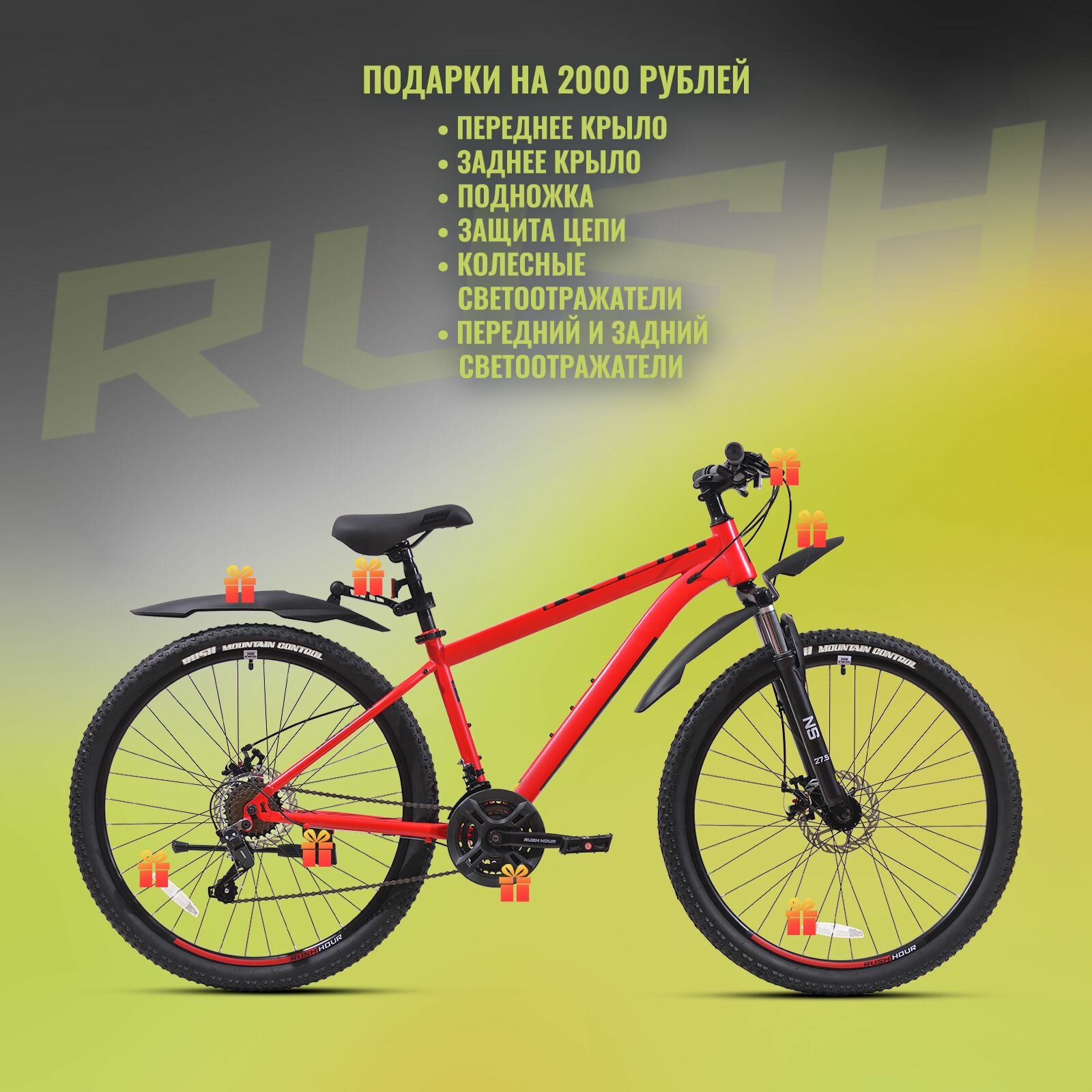 СохранитьВелосипед горный дисковый 27,5 RUSH HOUR RX 705 21 скорость красный рама 16" рост 150-165. скоростной подростоквый спортивный велик с амортизацией переключатель SHIMANO интересное: