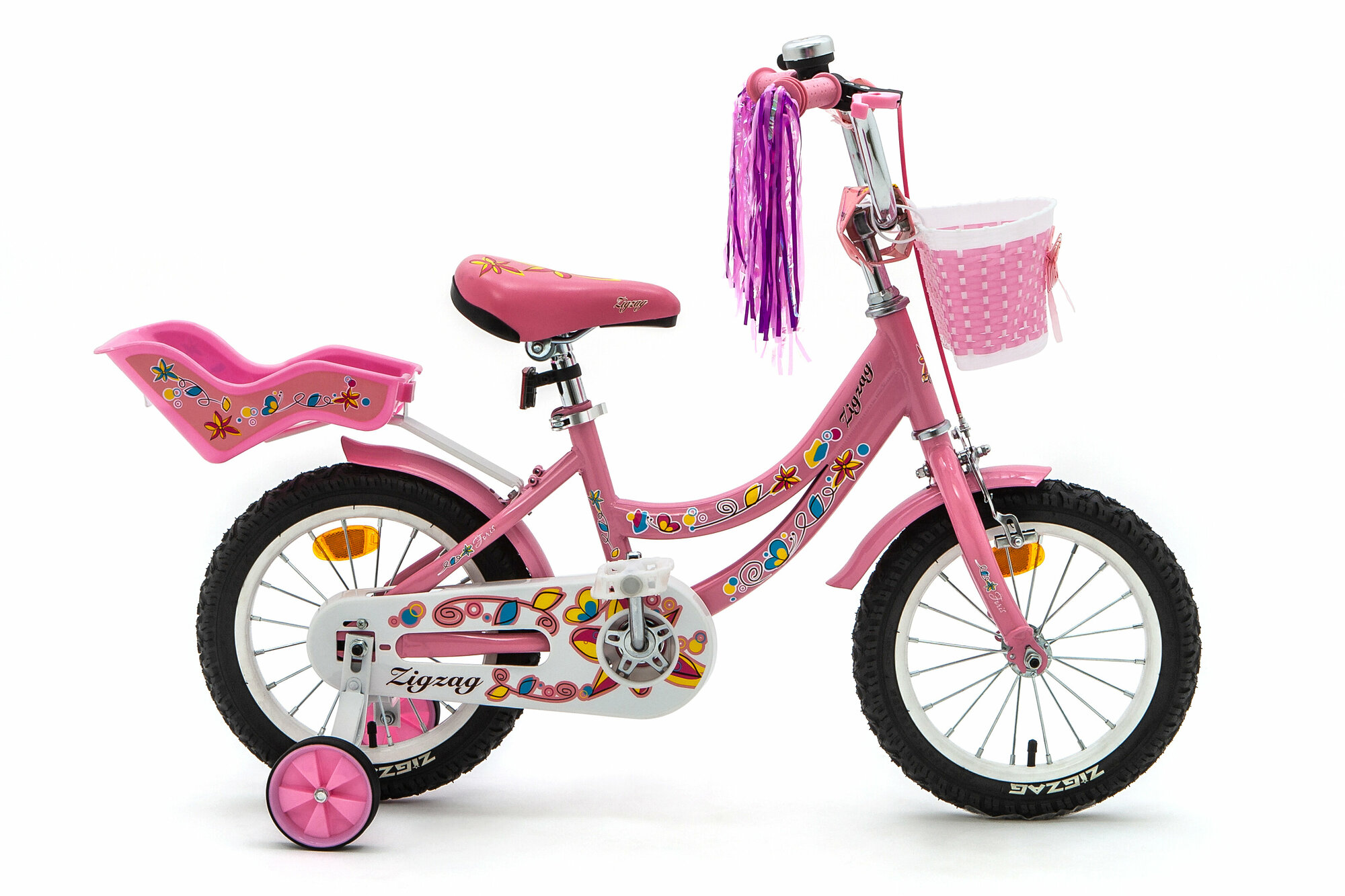 Купить Велосипед детский 14" ZIGZAG FORIS розовый для мальчиков и девочек от 3 до 5 лет на рост 90-110см 2024
