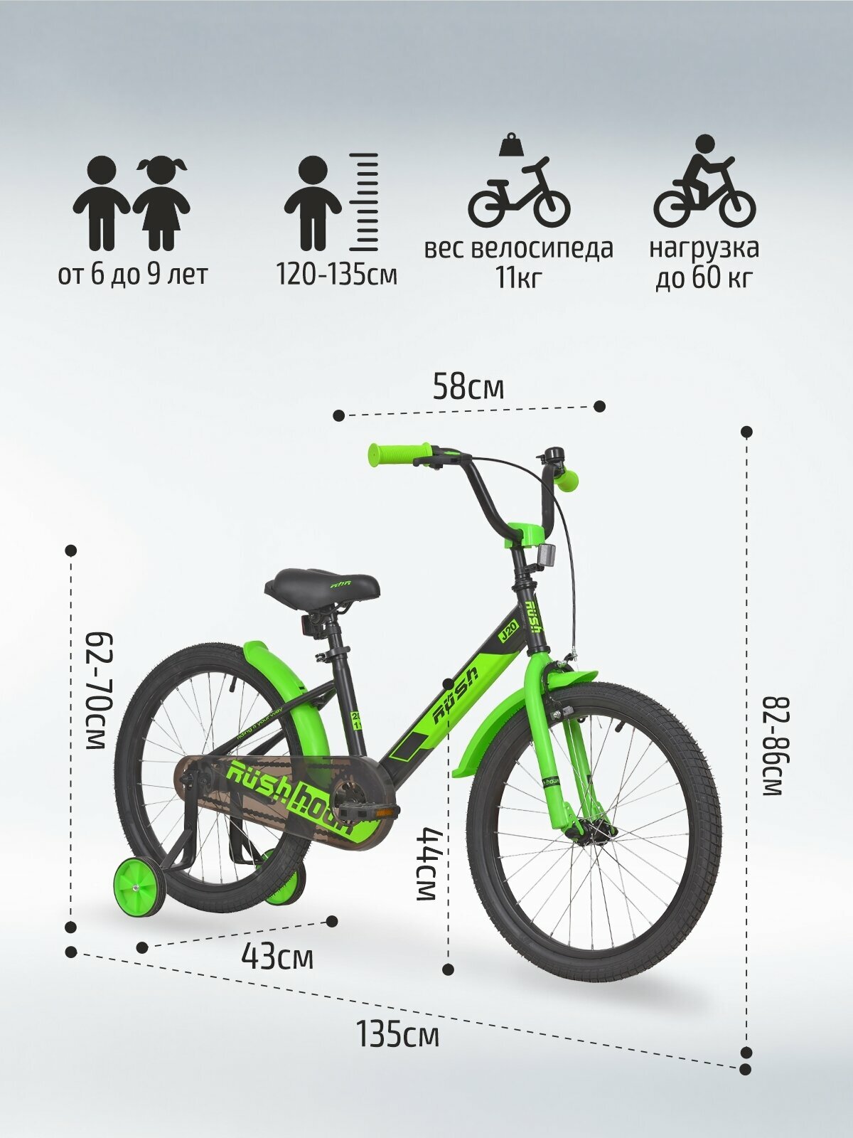 СохранитьВелосипед двухколесный детский 20" дюймов RUSH HOUR J20 рост 120-135 см черный. Для девочки, для мальчика 6 лет, 7 лет, 8 лет, для дошкольников, велосипед для школьников, велик детский,раш интересное: