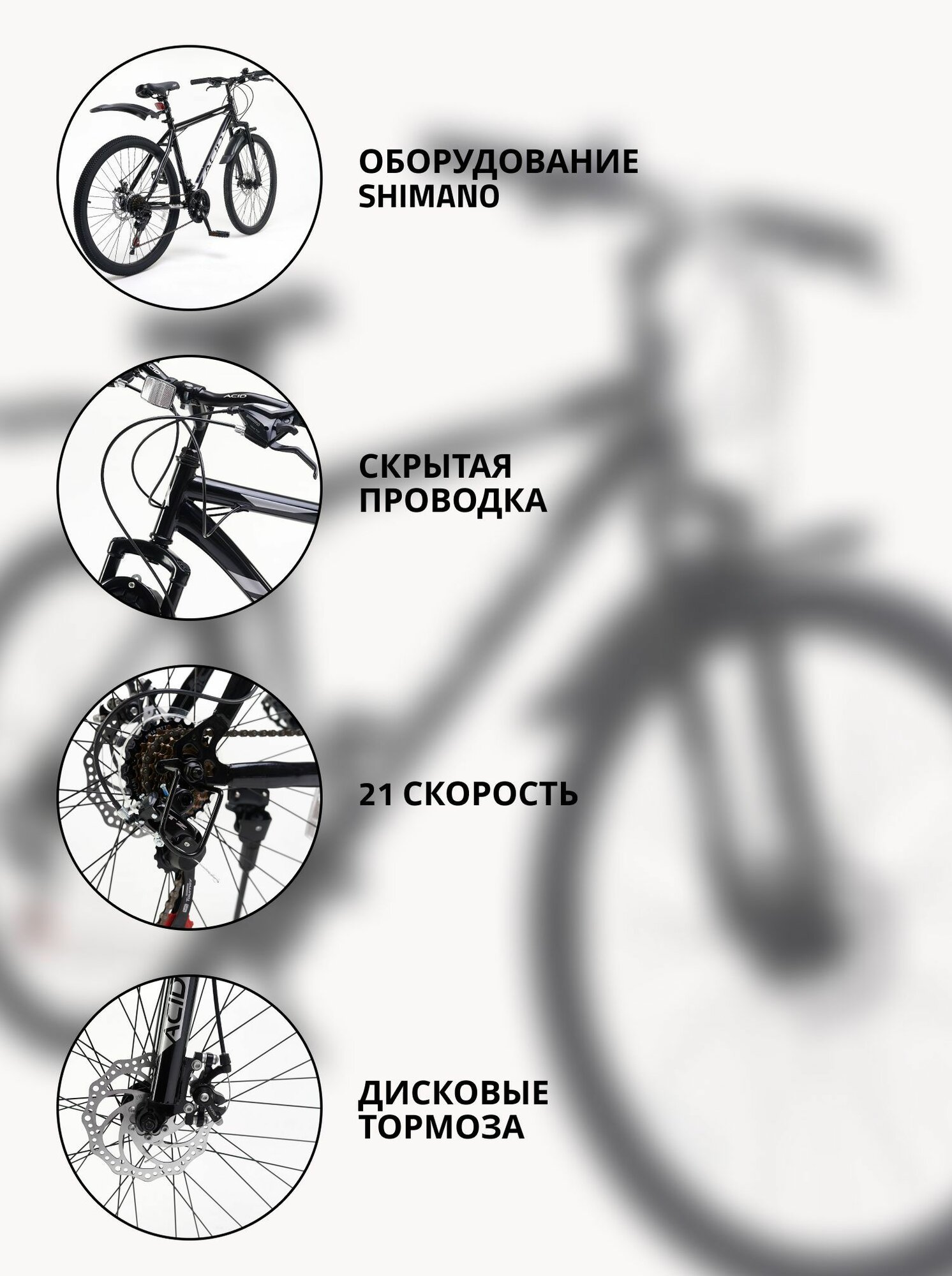 Велосипед горный 26"ACID F 200 D 21 скорость 2023 года рама 19" Black/Gray интересное: