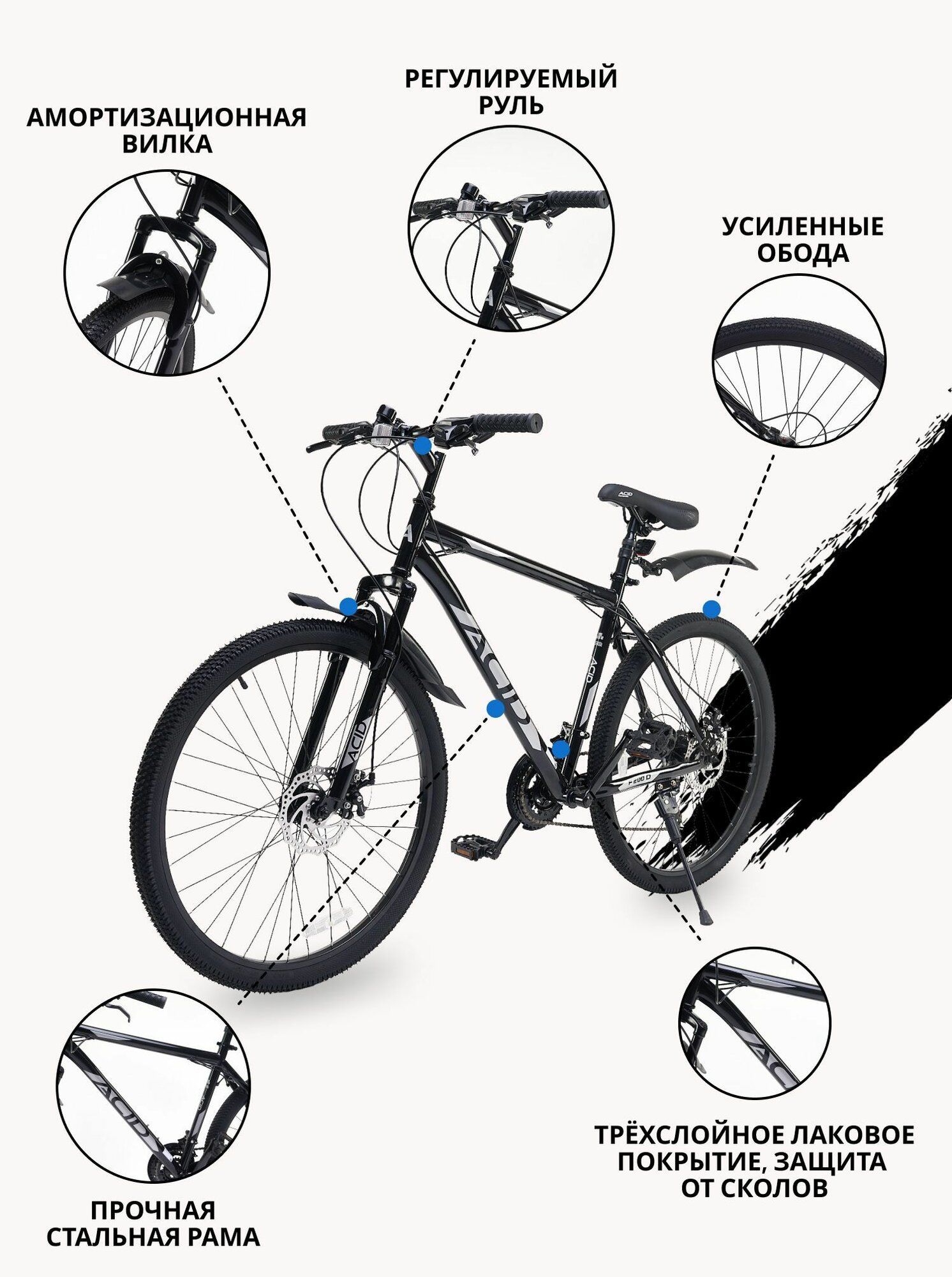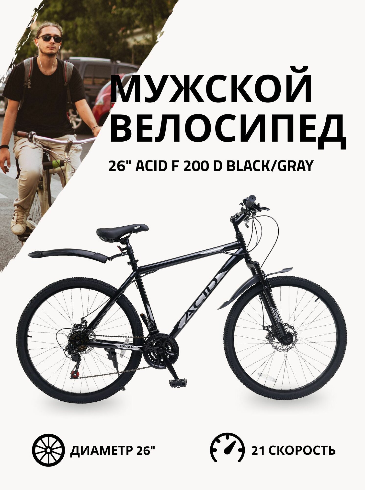 Купить Велосипед горный 26"ACID F 200 D 21 скорость 2023 года рама 19" Black/Gray
