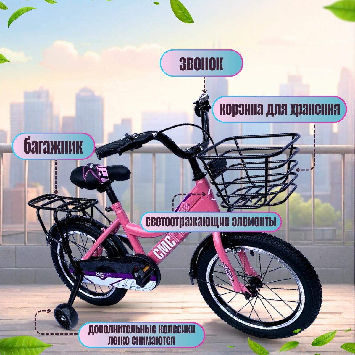 Велосипед детский 16 дюймов четырехколесный с корзиной, для детей от 4-х лет ростом до 130 см. интересное:
