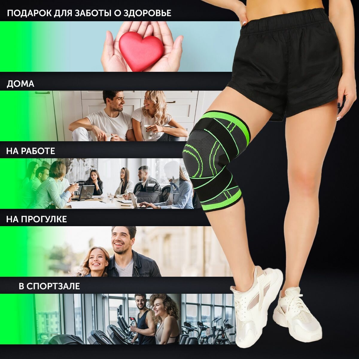 Наколенник для суставов "Двигайся легко", бандаж защита связок для спорта Leomax