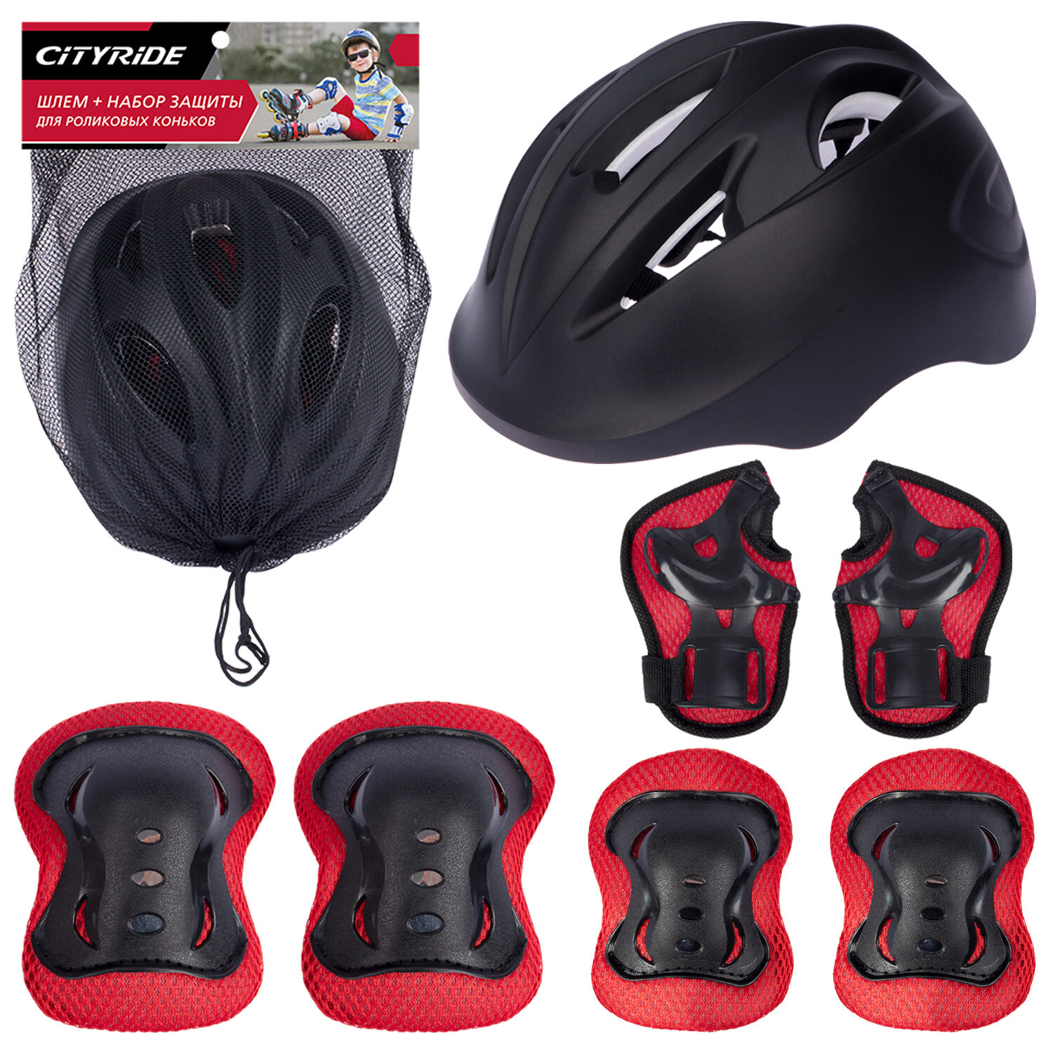 Комплект шлем, спортивная защита для детей ТМ CITYRIDE, для катания на роликах/самокатах/квадах/скейтбордах, размер универсальный, JB0211563