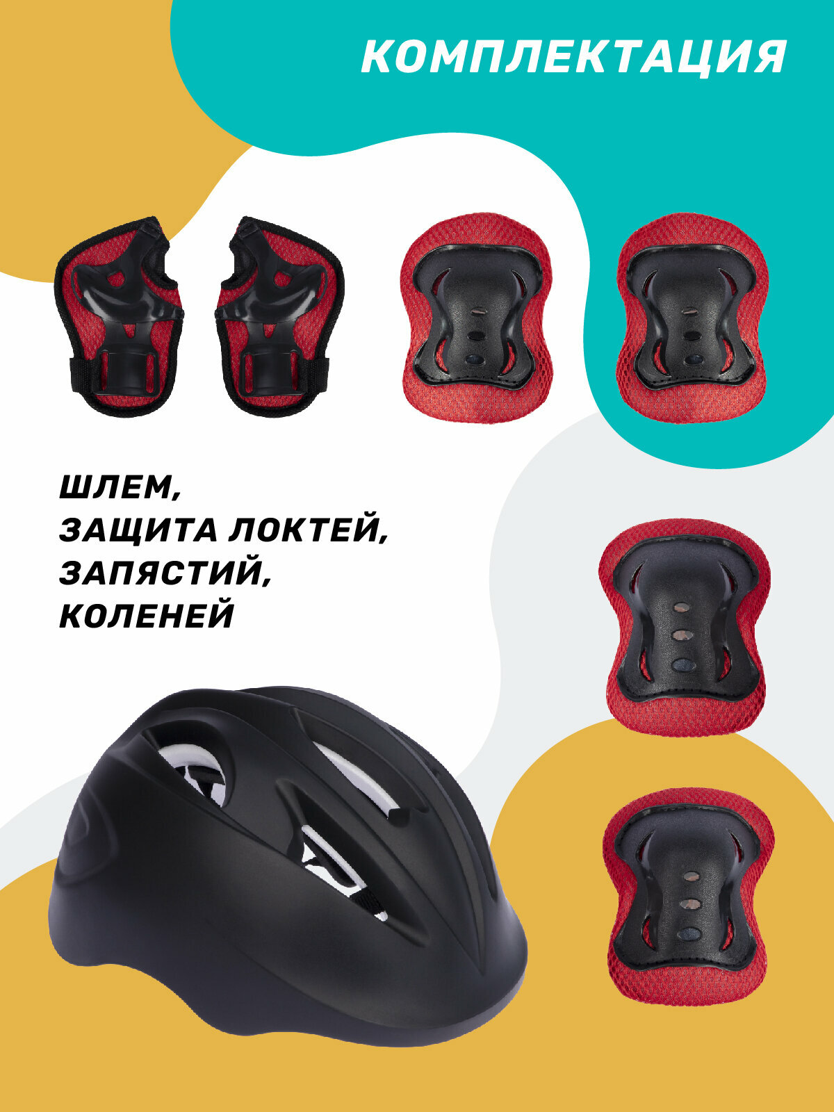 Комплект шлем, спортивная защита для детей ТМ CITYRIDE, для катания на роликах/самокатах/квадах/скейтбордах, размер универсальный, JB0212339