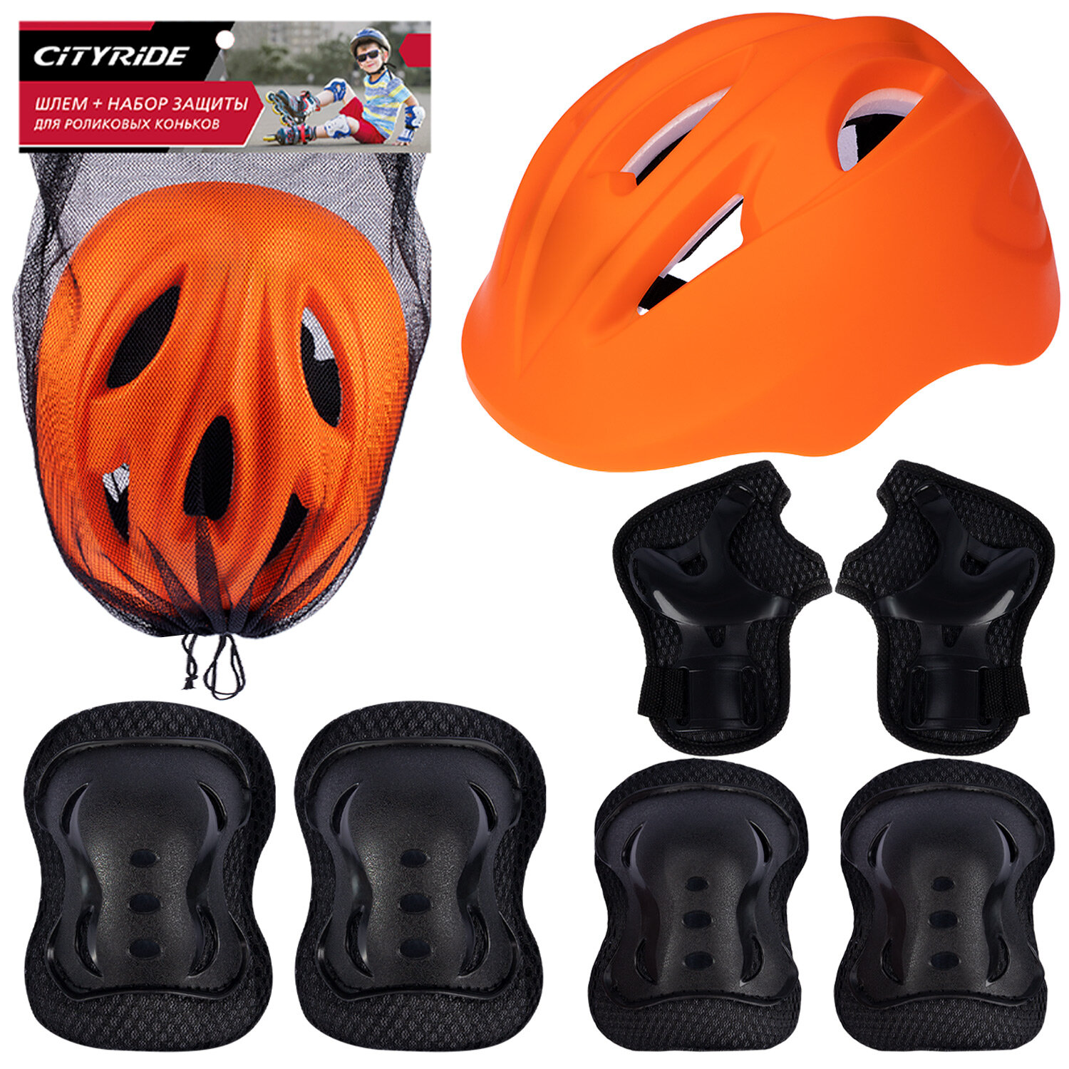 Комплект шлем, спортивная защита для детей ТМ CITYRIDE, для катания на роликах/самокатах/квадах/скейтбордах, размер универсальный, JB0212339
