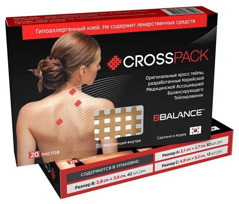 BBTape Cross Pack Набор кросс тейпов для локальной стимуляции рецепторов организма (3 размера : А-2.7см; B-3.6см; C-5.2см) бежевый интересное: