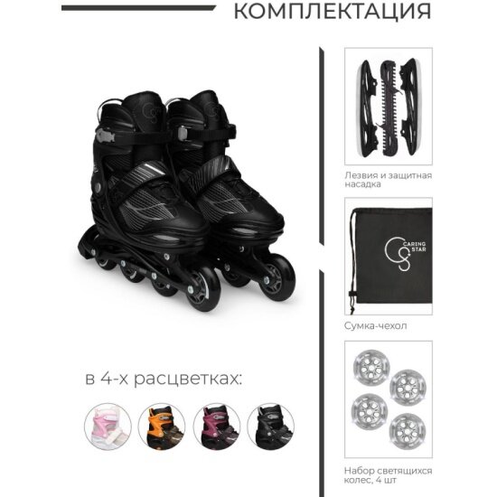 Роликовые коньки раздвижные 4 в 1 Сaring Star Caring Star R1 размер 38-41, графит/черный интересное: