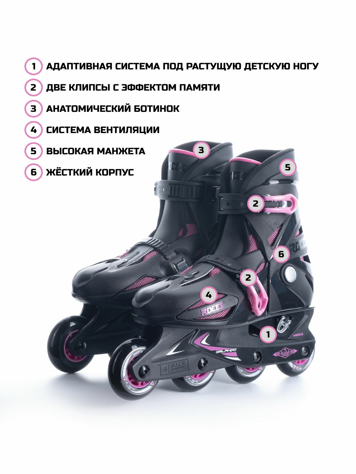 Купить Коньки роликовые раздвижные детские ROCES ORLANDO III BLACK-PINK (31-34)