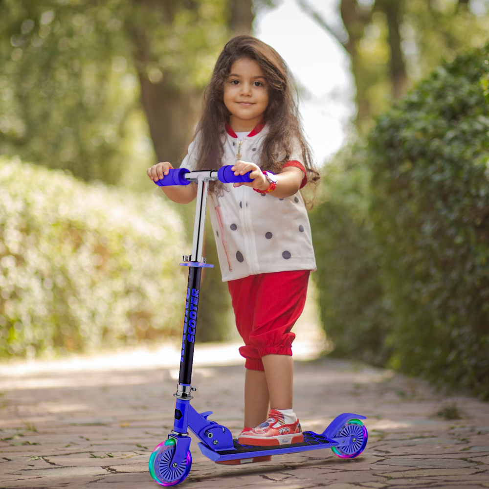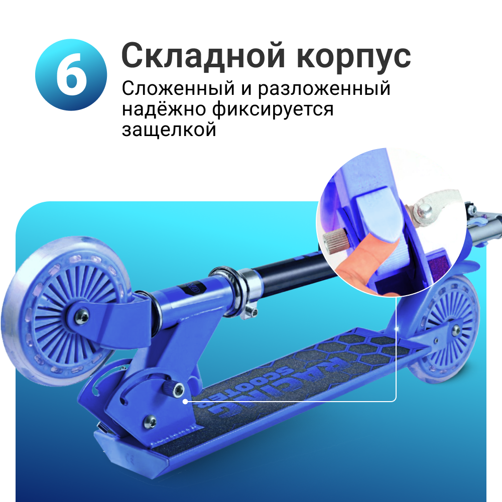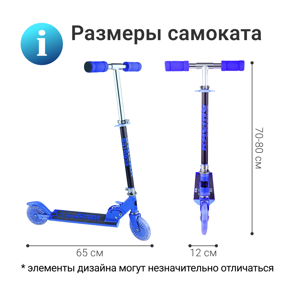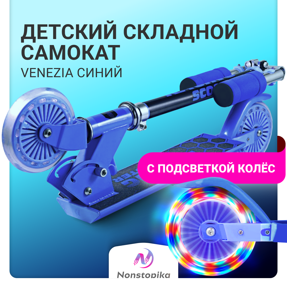 Самокат детский Nonstopika, складной со светящимися колесами и складным рулем, Venezia, синий интересное: