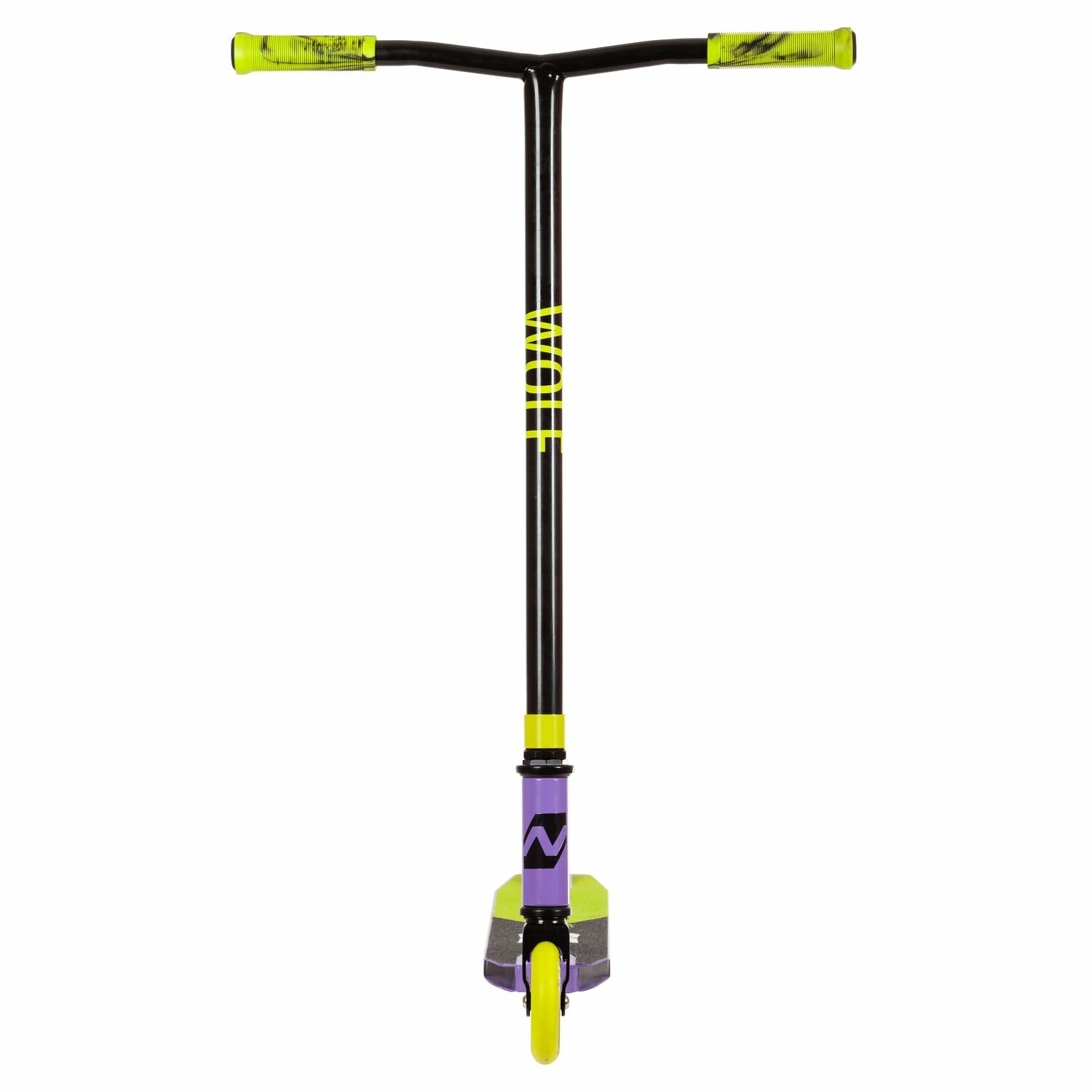 Самокат трюковый NOVATRACK WOLF'60, PU колеса с пластик. ободом плотностью 84A, abec7, зажим 2 болта, стальной руль, черно-фиолетовый