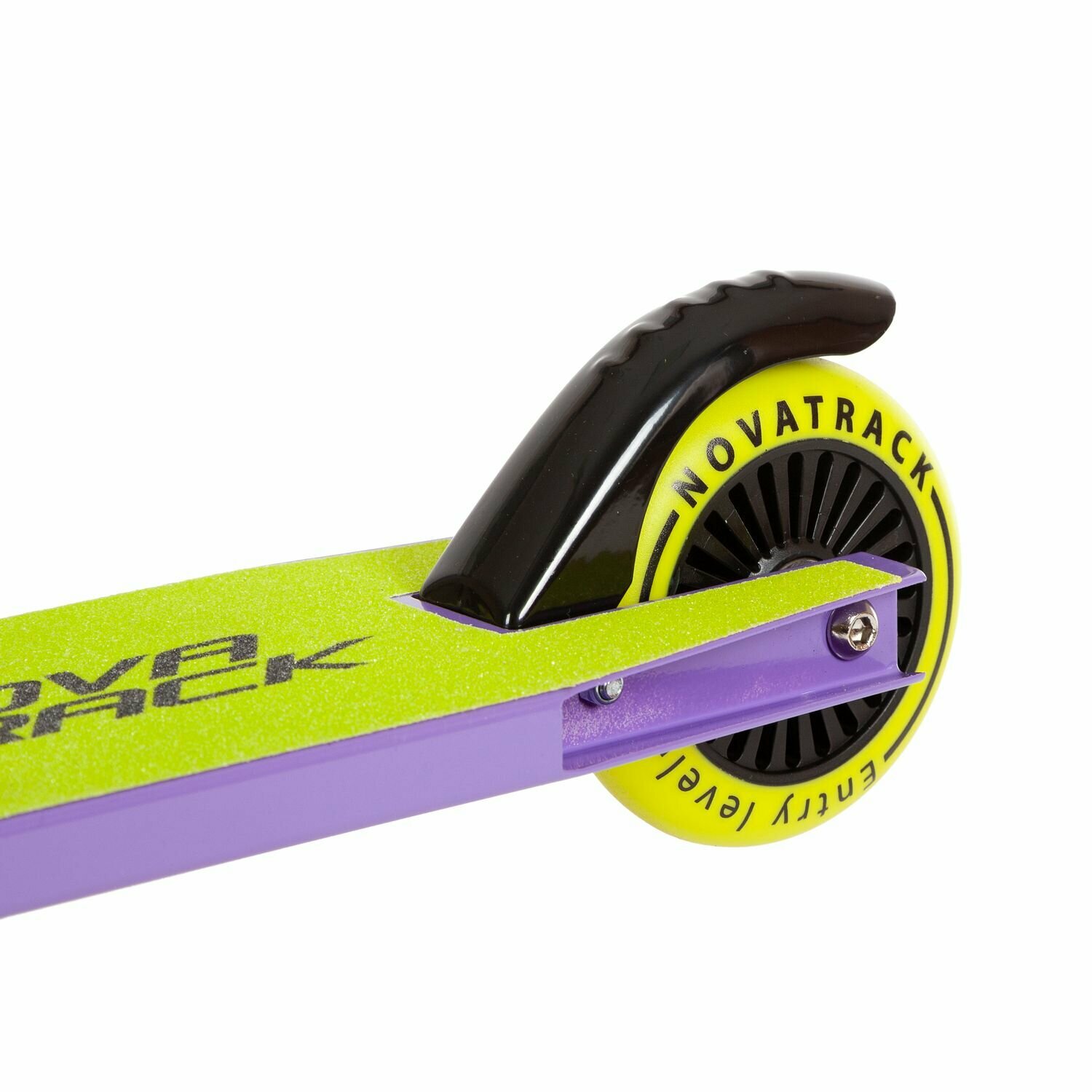 Купить Самокат трюковый NOVATRACK WOLF'60, PU колеса с пластик.ободом плотностью 84A, abec7, зажим 2 болта, стальной руль,черно-фиолетовый
